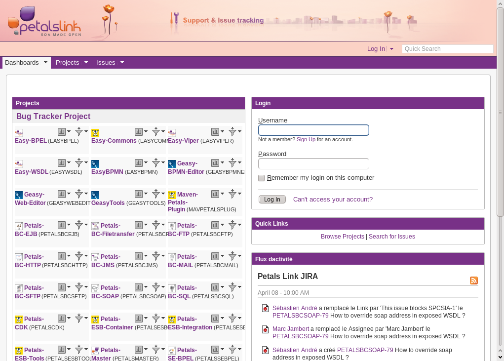 Cet outil est accessible à l'adresse suivante : http://support.petalslink.com