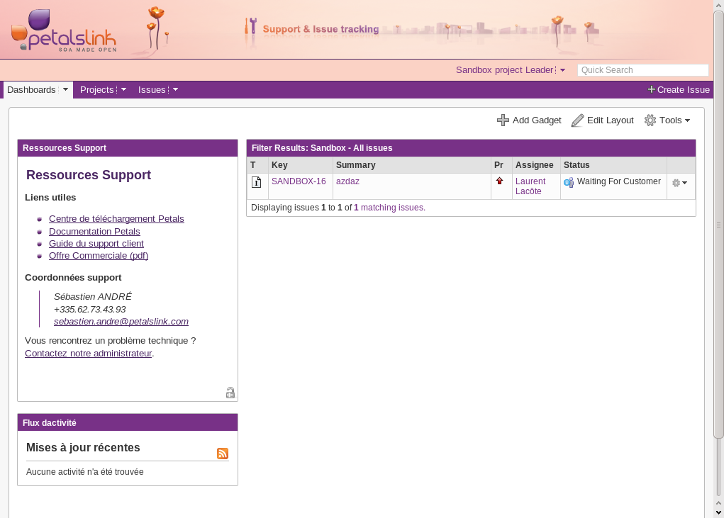 Nous utilisons le bugtracker (gestionnaire d'incidents) JIRA pour gérer le support.