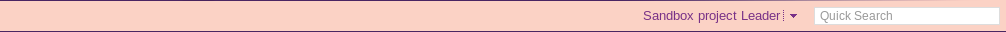 - la barre juste en dessous comprend un menu à votre nom (ici Sandbox project leader) qui contient des liens d'aide, et le champ de recherche.