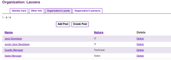 • The Organization's posts tab : there you can view the various positions of the organization (e.g.: manager, developer, etc.).