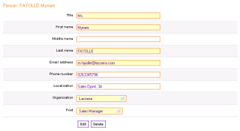 To access the person data, click on its name : the view/edit form appears.