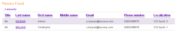 We will see later how to create a person (see Section 5.7, "Create a person"). Note that if you click on the name of a person in the list, the complete data about him/her appears, and you can edit it.