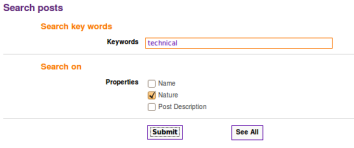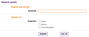 You can restrict search results by ticking search criteria (restrict the number of fields where the key words will be searched). To display the list of all Posts in Petals Master database push the "See All" button.
