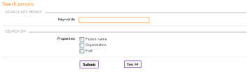 You can restrict search results by ticking search criteria (restrict the number of fields where the key words will be searched). To display the list of all Persons in Petals Master database push the "See All" button.