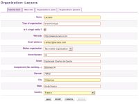 E.g., if you tick "Organization name" and "Type of organization", with the context of the "Lacoera Villepreux" search seen previously, there will be no search results, because there is no organization which name equals "Lacoera" or "Villepreux" and type of organization equals "Lacoera" or "Villepreux" ("Villepreux" is only present in a city name !). To find Lacoera organization with these key words you have to tick "Organization name" and "Localization".