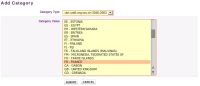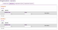 You can define categories, for example countries where organizations are located. Simply click "add" to define a new category. Some categorization systems comes with default values and descriptions. Others let you define your own values and descriptions. To delete categories, just tick them in the list and click Delete button.