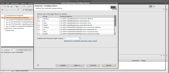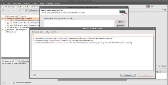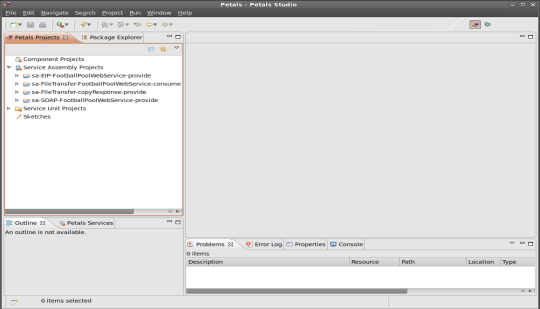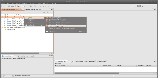 We'll first import in Petals Studio, the preconfigured services assemblies provided in PetalsView-SA directory. Thanks to this, we will easily retrieve informations we need to build our su-kpi.