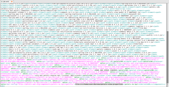 On this line – <petals-se-kpi:hibernateURL>: fill in the "petals-view.properties" file location