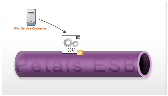Exposing an internal JBI service endpoint as a Web ServiceIn consumer mode, the component exposes an internal JBI service outside the bus to transfer incoming SOAP requests to the internal service. UsageThe petals-bc-soap component can listen incoming SOAP messages and send messages to a JBI service endpoint by deploying a Service Unit on it. The component consumes the JBI service: