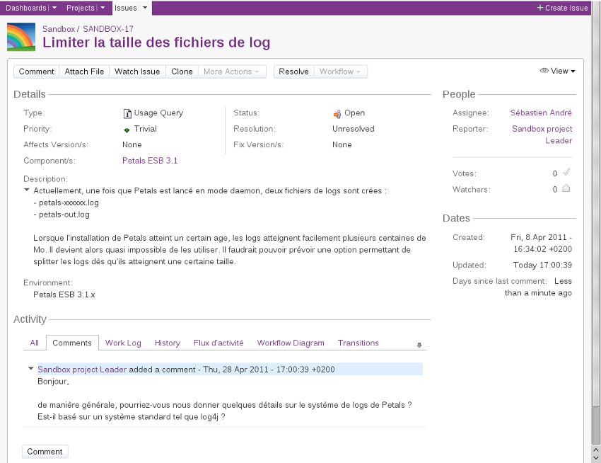 PNG File support-guide-user-11.png | 58 kB | Laurent Lacôte | Apr 12, 2011 6:15:17 PM CEST | Apr 12, 2011 6:15:17 PM CEST | Support Client - action fenêtre champs nouvel issue - exemple de remplissage | |